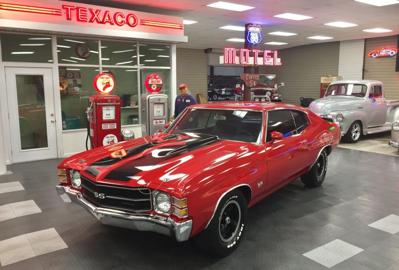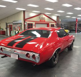 1971 Chevrolet Chevelle 454 SS, frame-off restored and finished in factory Cranberry Red. Equipped with a 454 V8, Turbo 400 automatic, 12-bolt rear, power steering, power disc brakes, and A/C. Features show-quality paint, arrow-straight body, and all new chrome, glass, and trim. Just under 3,000 miles since completion.